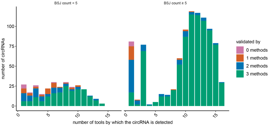 故事很长,本文联合了环状RNA领域的诸多大咖一起,通过3种低通量检测方法对16个高通量circRNA检测方法的精确性和敏感性等指标进行了评估。而这16个工具,来自不同的时间、不同的研究小组,见证了环状RNA领域的发展史;每一个工具的背后应该都有一段故事——叙说了开发者对环状RNA的认知和期许。