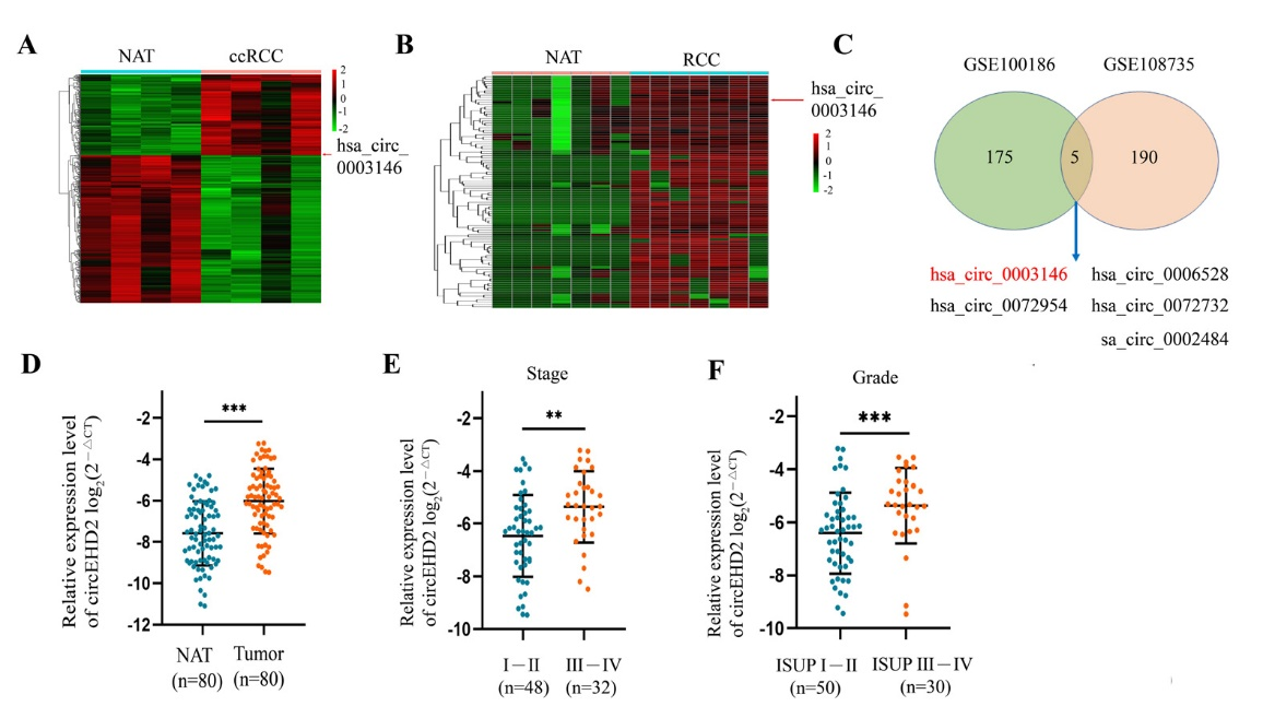 1、circEHD2在肾癌样本中高表达、具有临床生物标志物的潜能