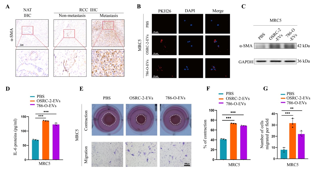 9、肾癌细胞分泌的外泌体circEHD2转运至成纤维细胞中,激活成纤维细胞转换为肿瘤相关成纤维细胞(CAFs),而CAFs通过分泌IL-6,促进肾癌细胞的转移
