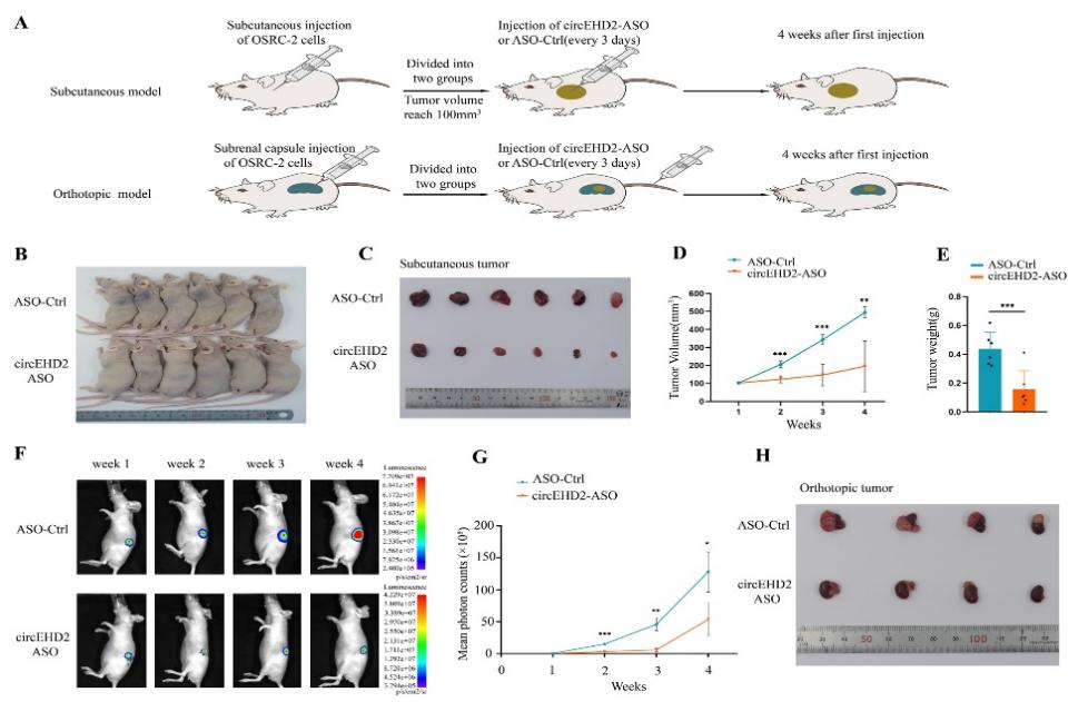10、circEHD2-ASO可明显抑制肿瘤的生长,因此,circEHD2可能成为治疗肾癌的潜在分子靶点