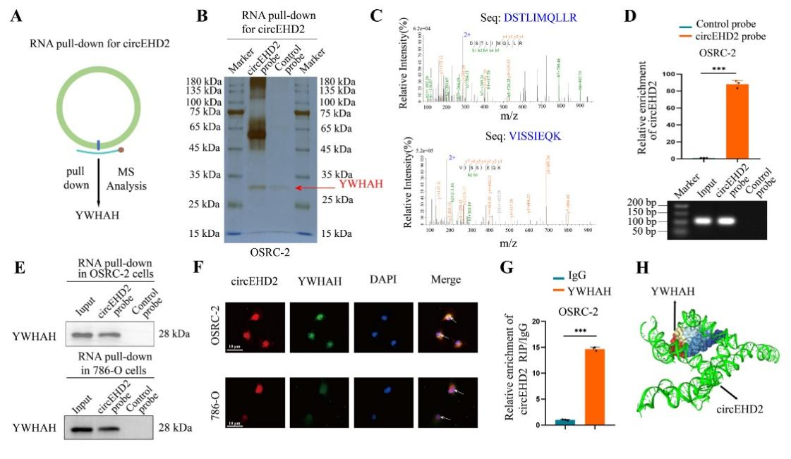 4、circEHD2在肾癌细胞中可与YWHAH蛋白结合于细胞核中