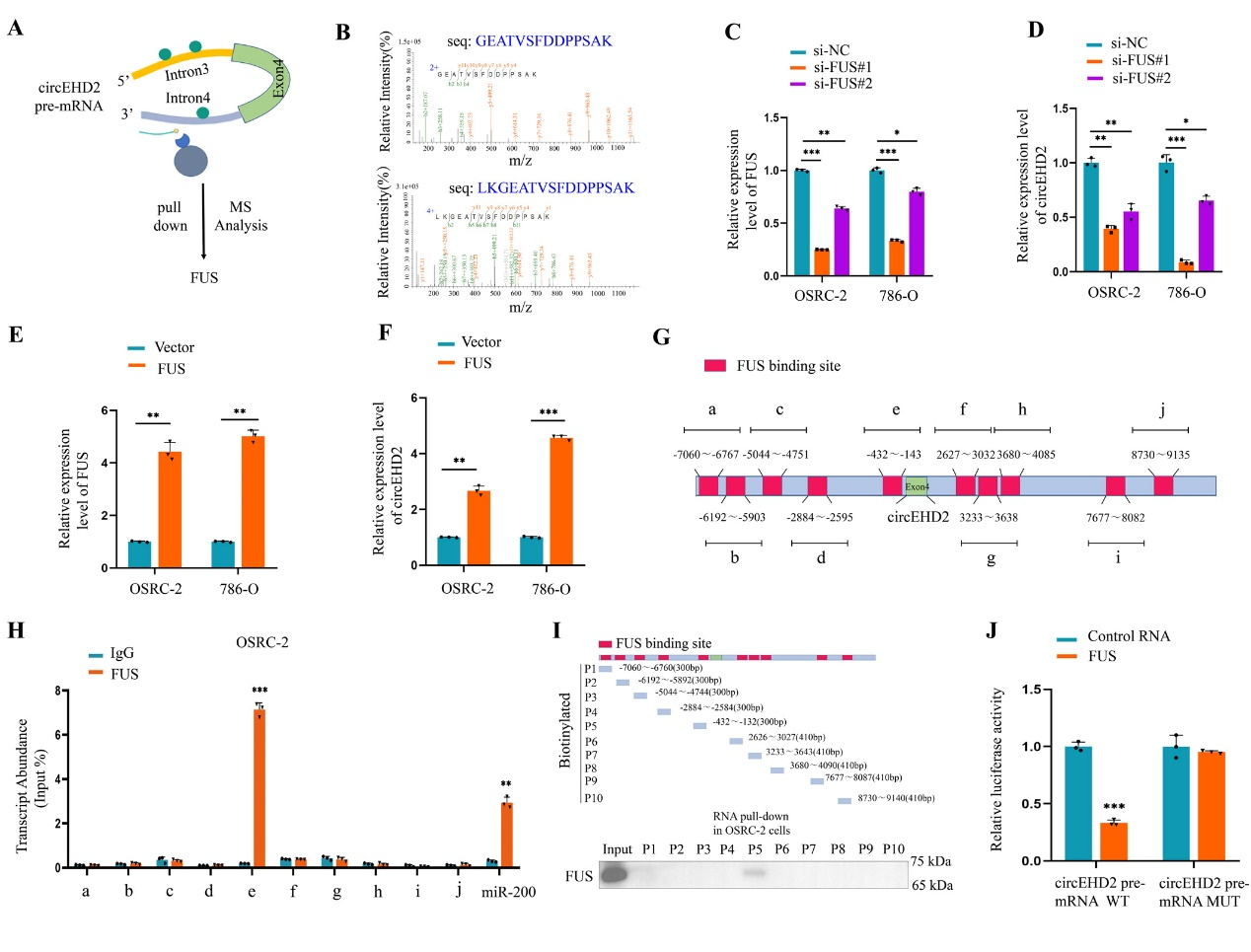 7、剪接因子FUS可通过结合circEHD2的前体mRNA,从而促进circEHD2的生成