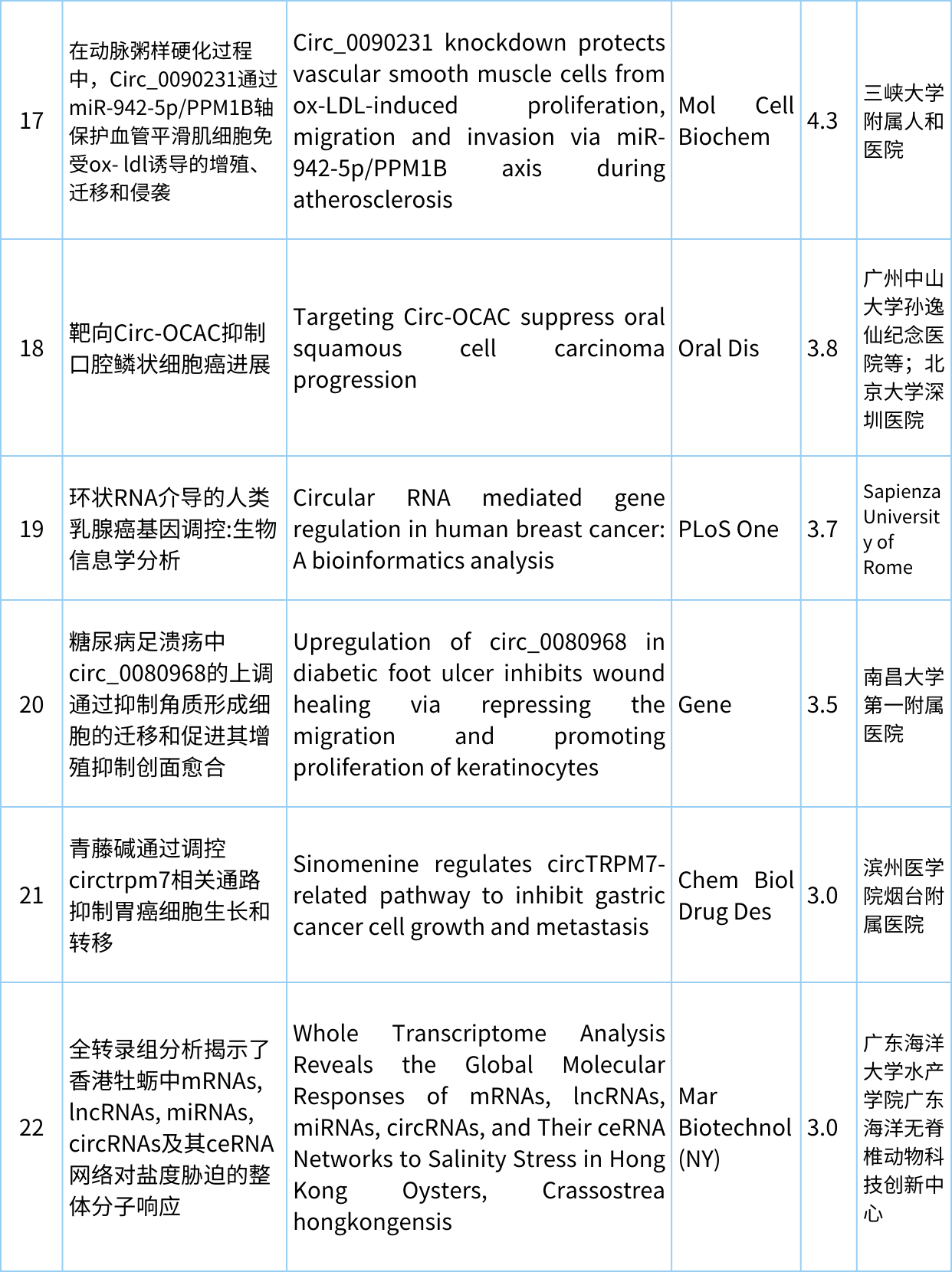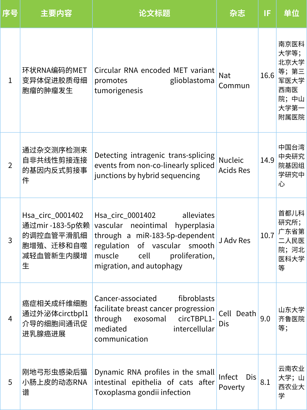 欢迎各位来到“circRNA研究汇总”栏目,本期从pubmed中检索收集最新发布的circRNA文献共计28篇,现在让我们一起看看circRNA研究最近有哪些新进展。 检索式:(circRNA[Title/Abstract]) OR circular RNA[Title/Abstract] 研究汇总列表 分类: circRNA与疾病, circRNA生物学, 前沿动态, 最新重要进展, 每周进展汇总, 研究热点跟踪admin七月 31, 2023评论
