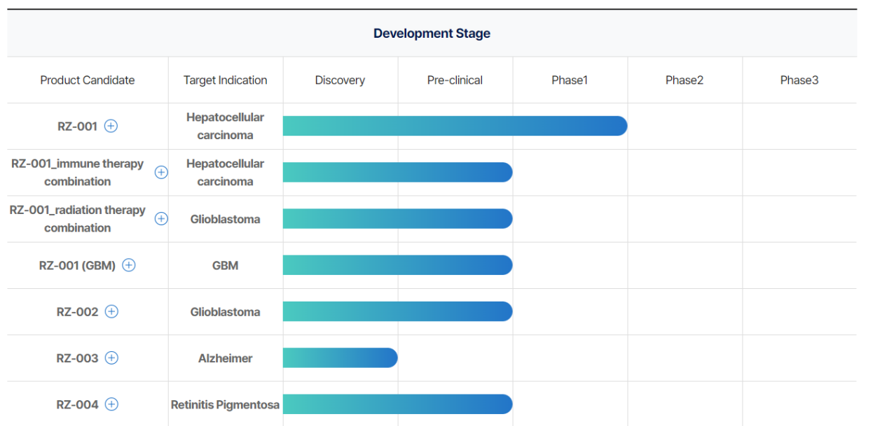 该公司的首席候选药物(RZ-001)针对肝细胞癌和胶质母细胞瘤,在韩国和美国已获得1/2a临床试验IND批准。相比传统的基因治疗方法,Rznomics的RZ-001更具效率和持久性,成为治疗这些顽疾的新希望。