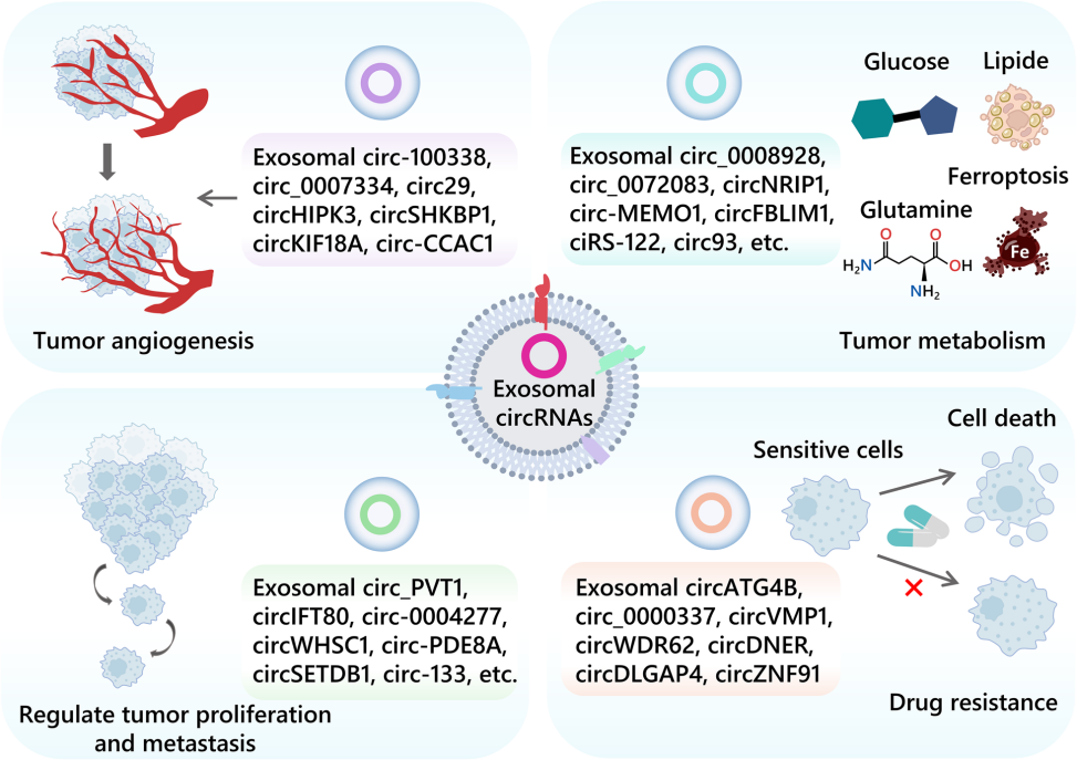 代谢重编程和失调伴随着肿瘤进展,并为肿瘤细胞的生长和分裂提供必要前提。事实上,许多癌症与代谢性疾病有关,而外泌体circRNA参与了癌症的新陈代谢。