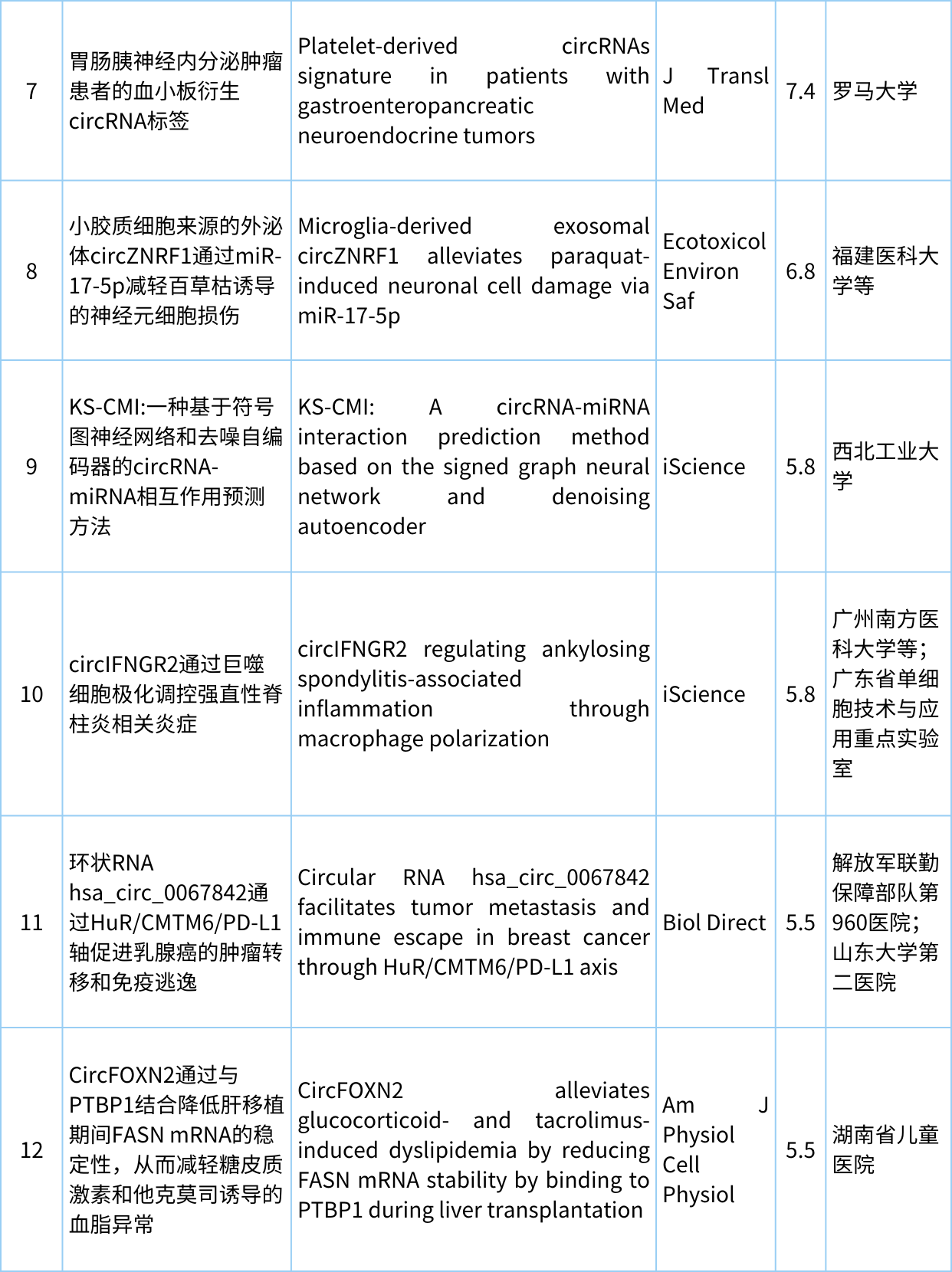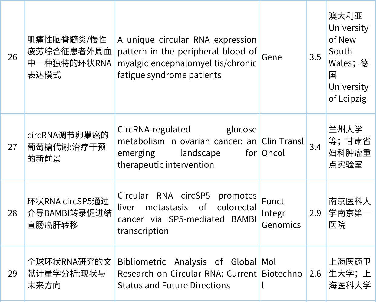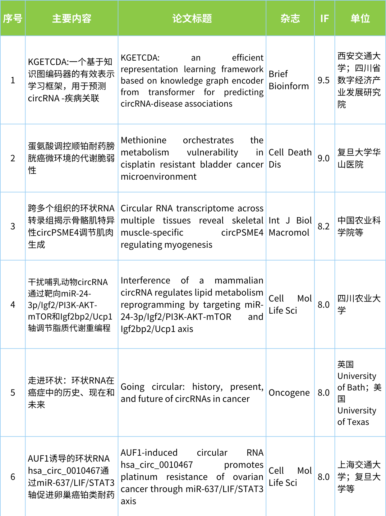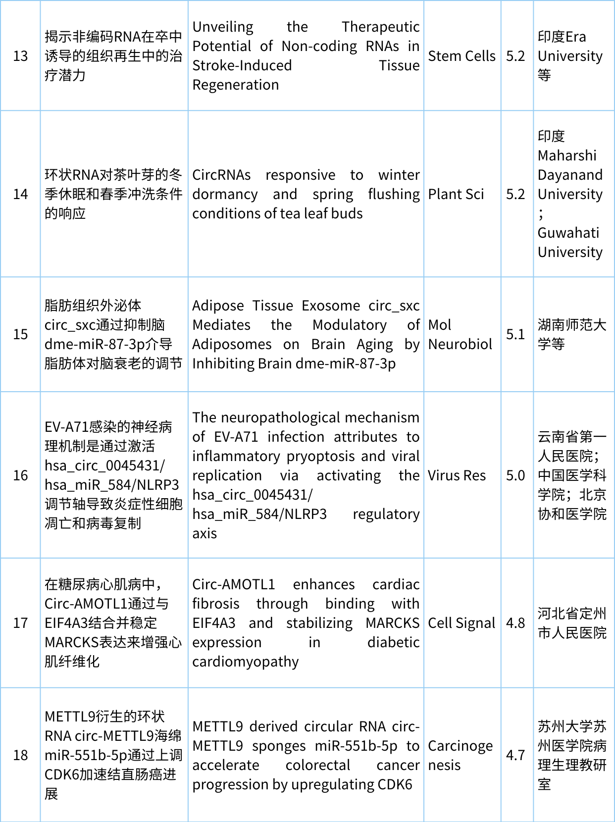 欢迎各位来到“circRNA研究汇总”栏目,本期从pubmed中检索收集最新发布的circRNA文献共计29篇,现在让我们一起看看circRNA研究最近有哪些新进展。 检索式:(circRNA[Title/Abstract]) OR circular RNA[Title/Abstract] 研究汇总列表 分类: circRNA与疾病, circRNA生物学, 前沿动态, 最新重要进展, 每周进展汇总, 研究热点跟踪admin八月 21, 2023评论