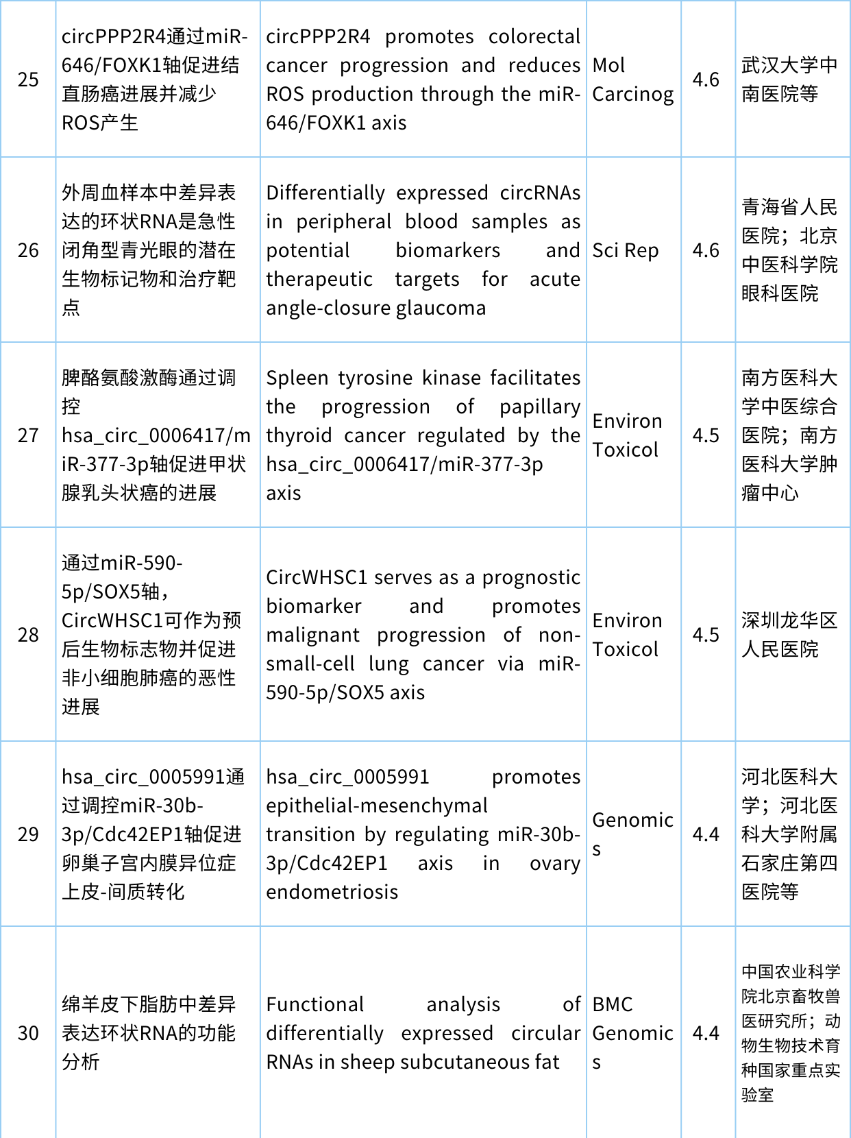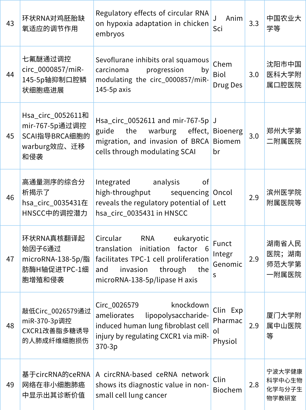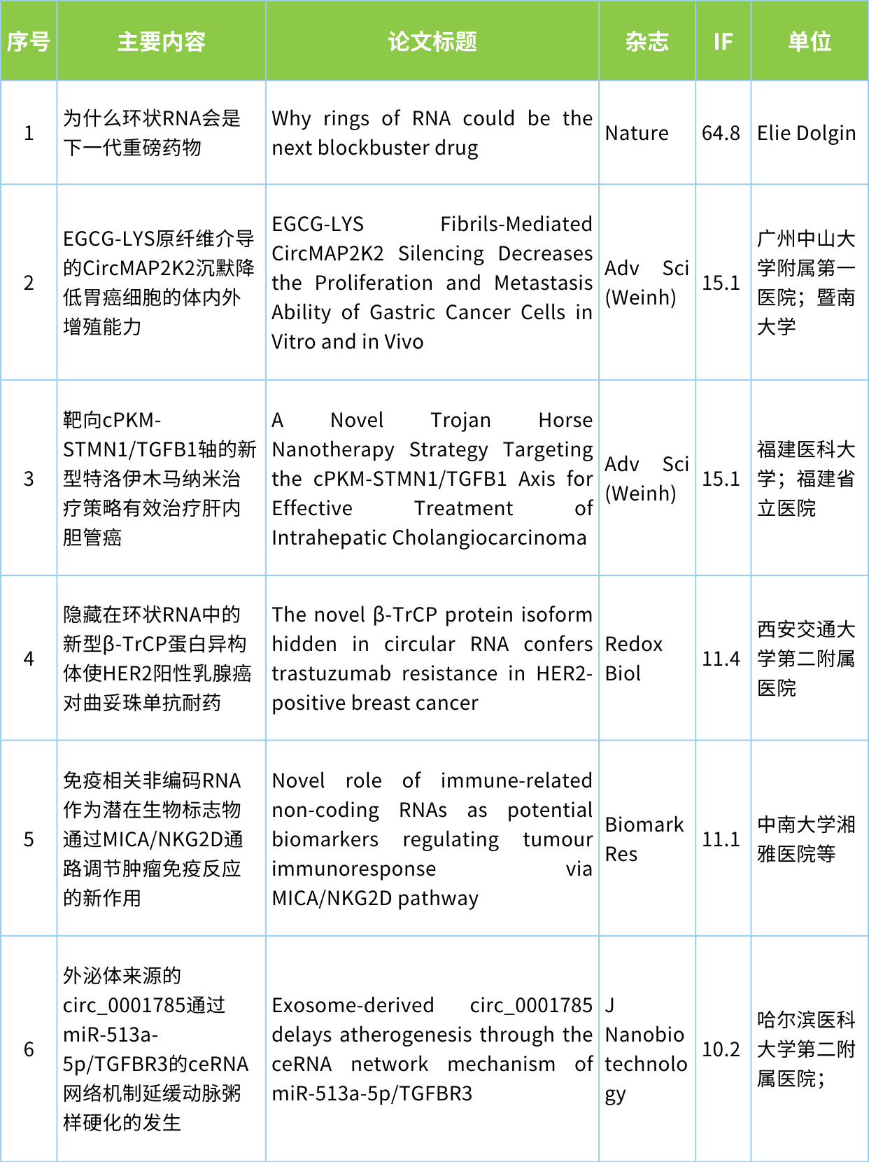 欢迎各位来到“circRNA研究汇总”栏目,本期从pubmed中检索收集最新发布的circRNA文献共计67篇,现在让我们一起看看circRNA研究最近有哪些新进展。 检索式:(circRNA[Title/Abstract]) OR circular RNA[Title/Abstract] 研究汇总列表 分类: circRNA与疾病, 前沿动态, 最新重要进展, 每周进展汇总, 研究热点跟踪admin十月 9, 2023评论