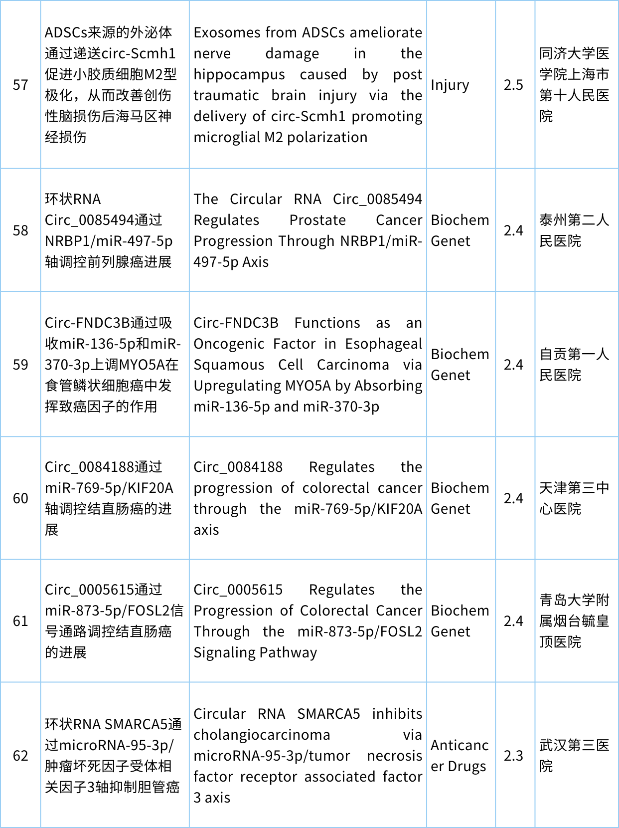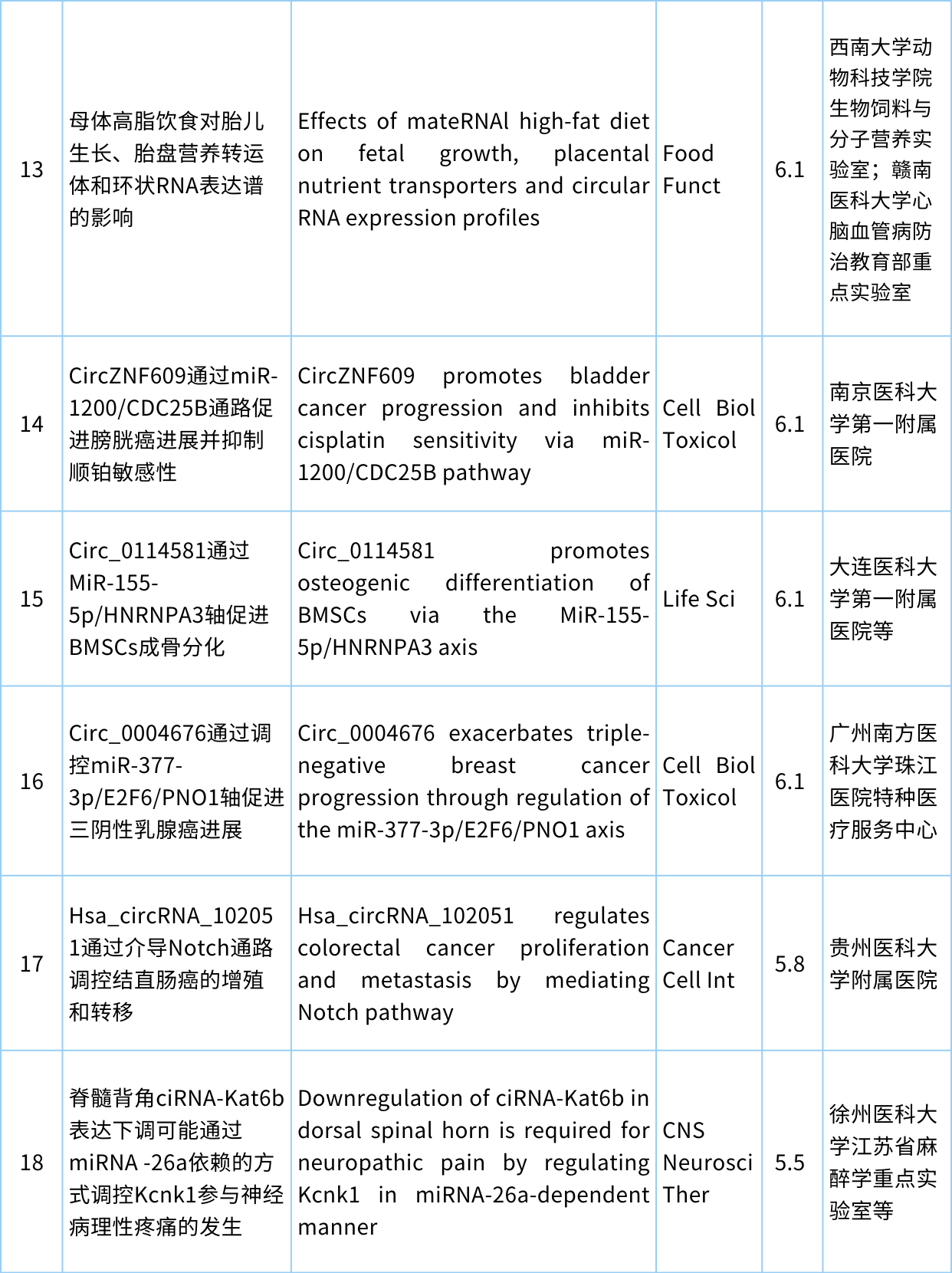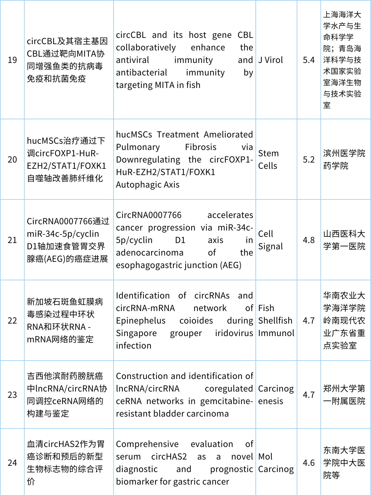 欢迎各位来到“circRNA研究汇总”栏目,本期从pubmed中检索收集最新发布的circRNA文献共计67篇,现在让我们一起看看circRNA研究最近有哪些新进展。 检索式:(circRNA[Title/Abstract]) OR circular RNA[Title/Abstract] 研究汇总列表 分类: circRNA与疾病, 前沿动态, 最新重要进展, 每周进展汇总, 研究热点跟踪admin十月 9, 2023评论