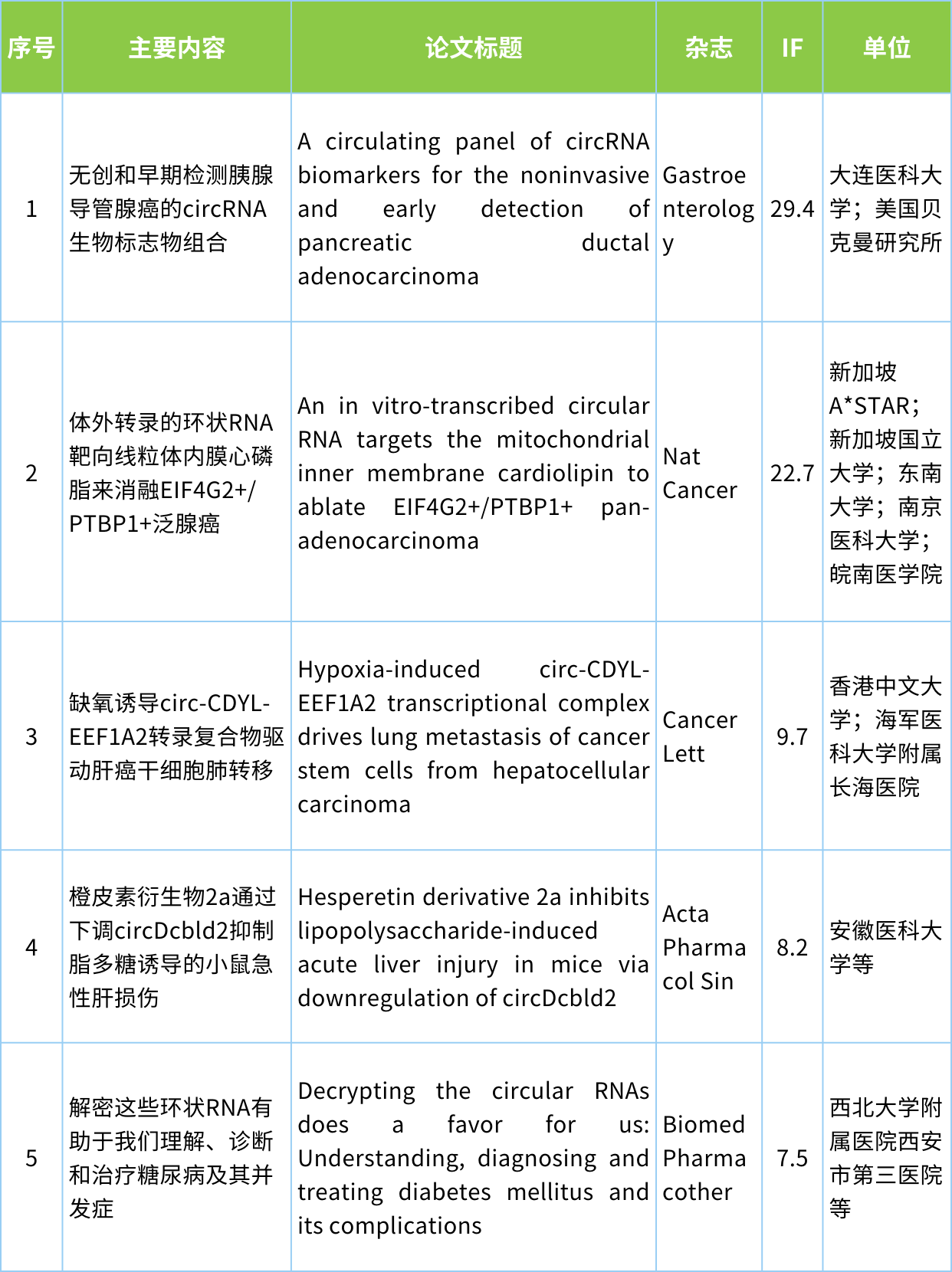 欢迎各位来到“circRNA研究汇总”栏目,本期从pubmed中检索收集最新发布的circRNA文献共计25篇,现在让我们一起看看circRNA研究最近有哪些新进展。 检索式:(circRNA[Title/Abstract]) OR circular RNA[Title/Abstract] 研究汇总列表 分类: circRNA与疾病, circRNA生物学, 最新重要进展, 每周进展汇总, 研究热点跟踪admin十月 23, 2023评论