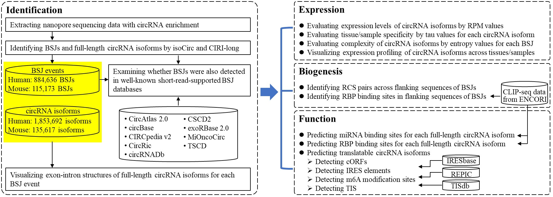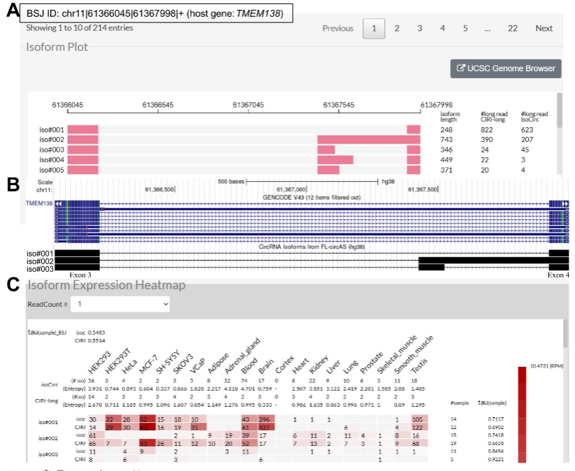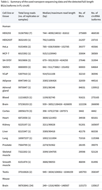 前不久我们介绍过赵老师团队的circAtlas 3.0整合了纳米孔测序数据,能够提供一些环状RNA的转录本全长信息。