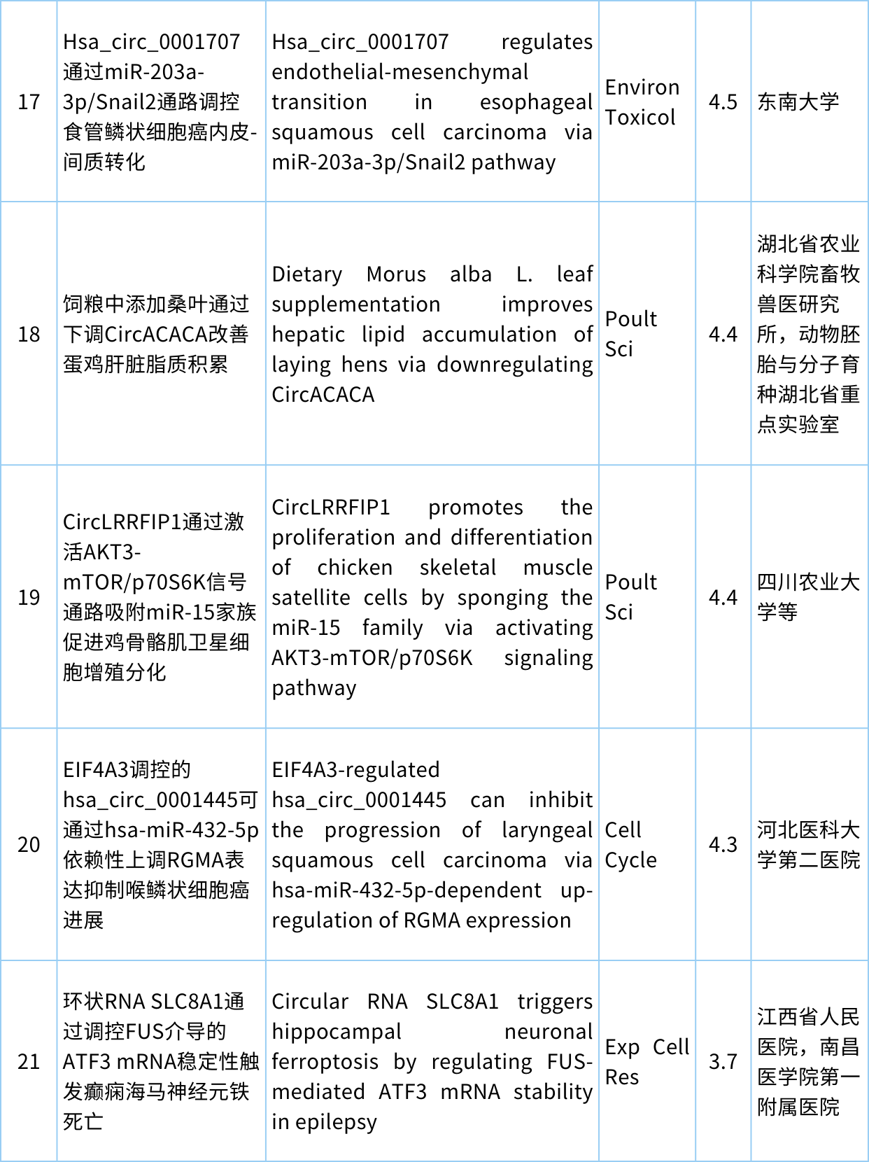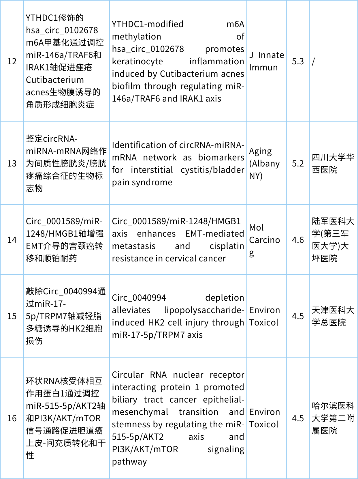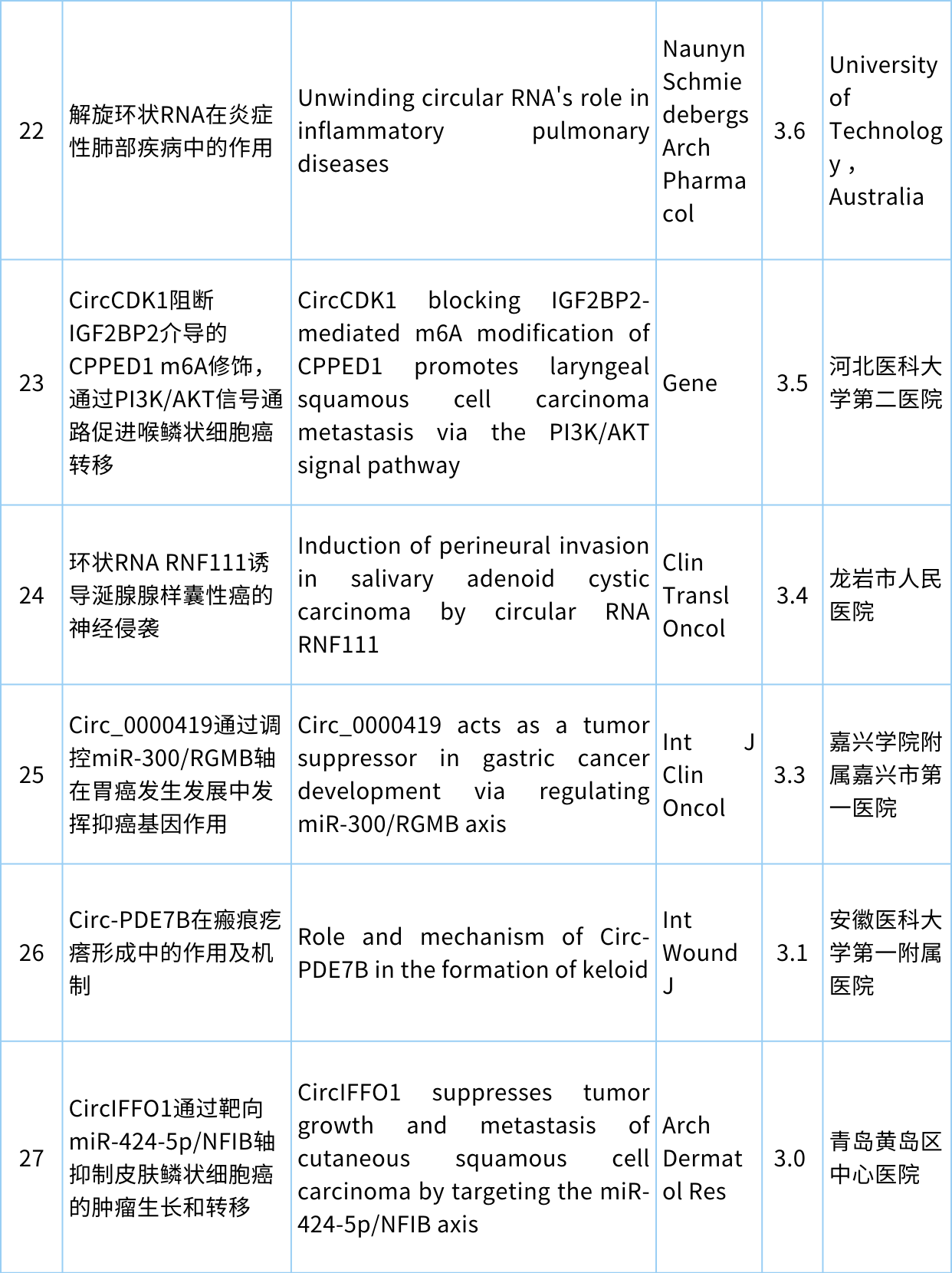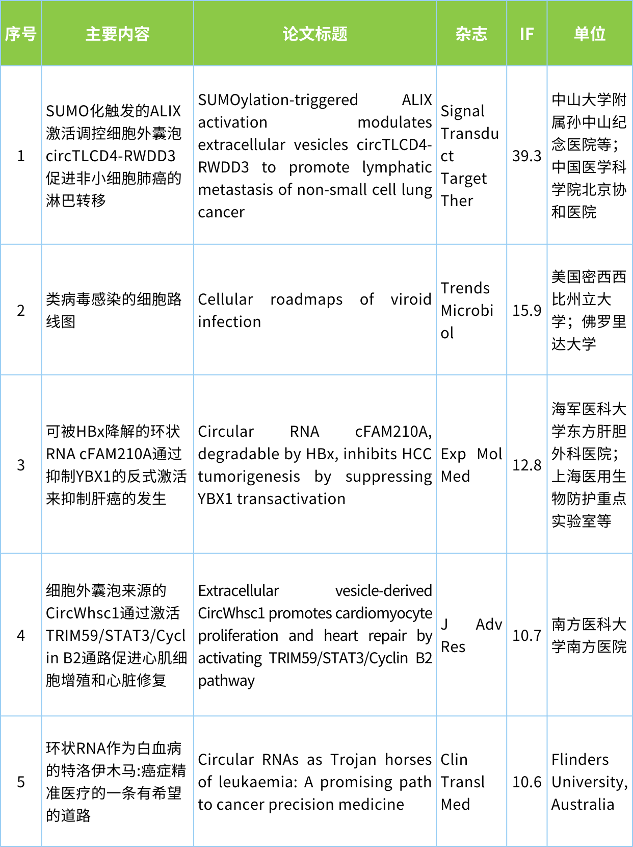 欢迎各位来到“circRNA研究汇总”栏目,本期从pubmed中检索收集最新发布的circRNA文献共计39篇,现在让我们一起看看circRNA研究最近有哪些新进展。 检索式:(circRNA[Title/Abstract]) OR circular RNA[Title/Abstract] 研究汇总列表 分类: circRNA与疾病, circRNA生物学, 前沿动态, 最新重要进展, 每周进展汇总, 研究热点跟踪admin十一月 6, 2023评论