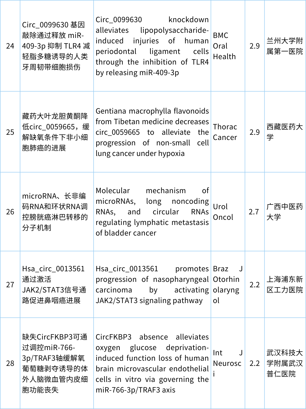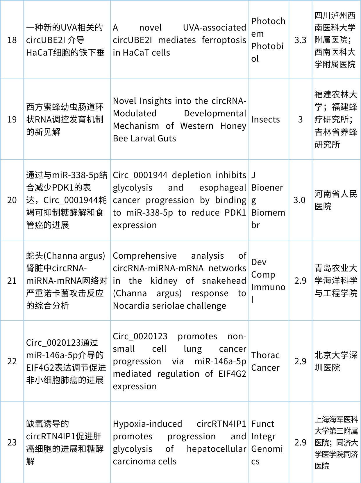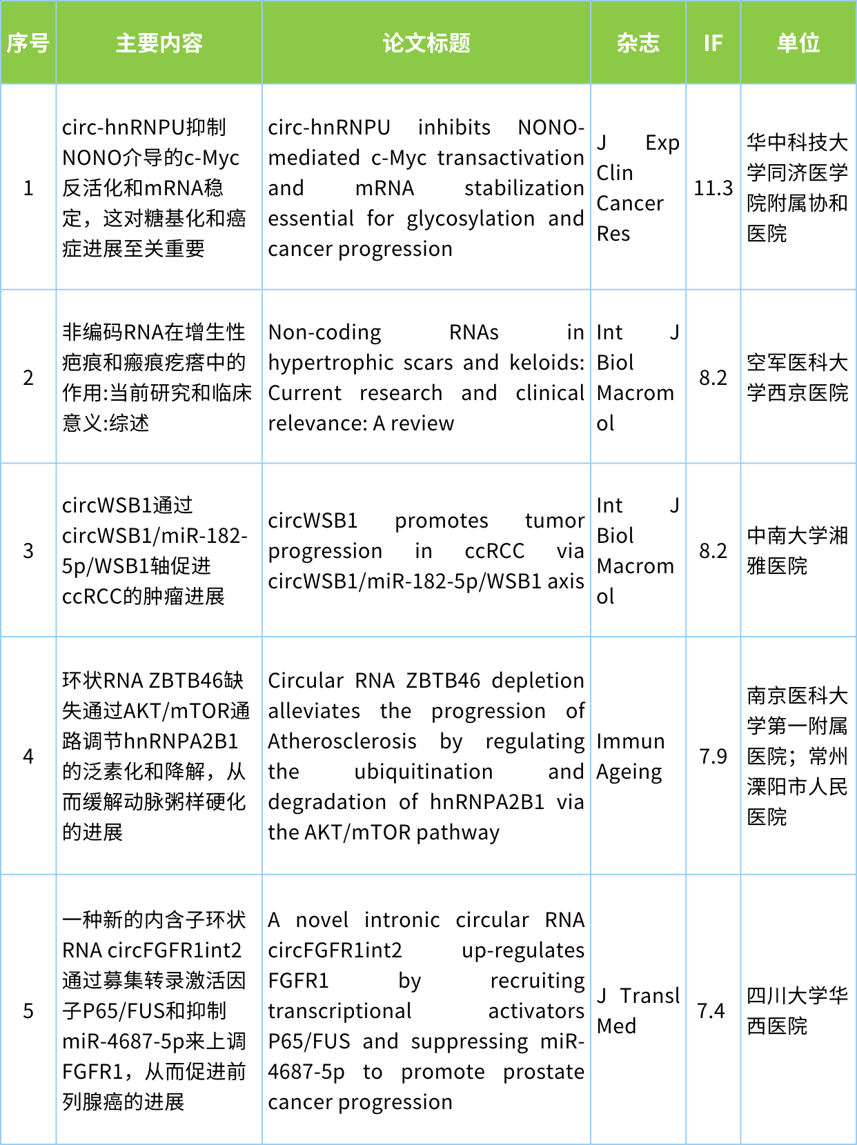欢迎各位来到“circRNA研究汇总”栏目,本期从pubmed中检索收集最新发布的circRNA文献共计28篇,现在让我们一起看看circRNA研究最近有哪些新进展。 检索式:(circRNA[Title/Abstract]) OR circular RNA[Title/Abstract] 研究汇总列表 分类: circRNA与疾病, 前沿动态, 最新重要进展, 每周进展汇总, 研究热点跟踪admin十一月 27, 2023评论