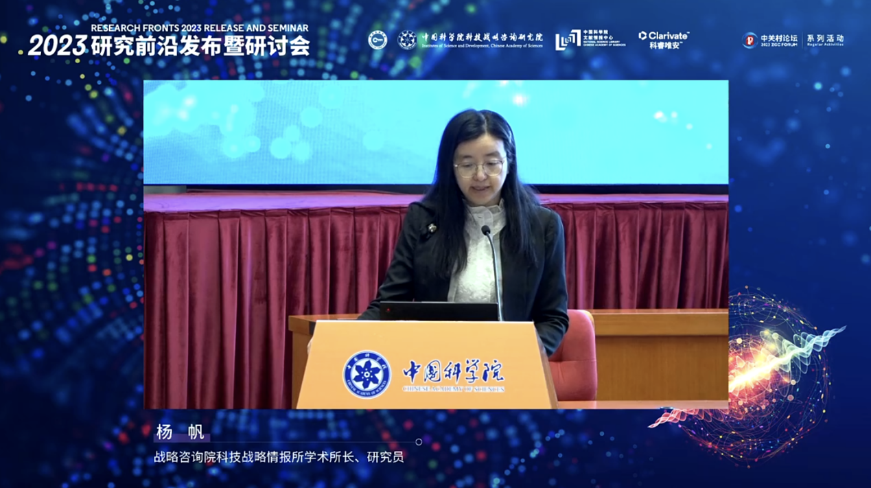 中国科学院科技战略咨询研究院科技战略情报所学术所长杨帆研究员发布《2023研究前沿》