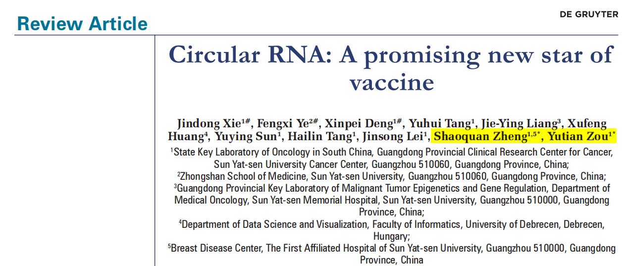 为此,中山大学肿瘤防治中心邹宇田和郑少全在J Transl Int Med(IF=4.9)期刊上发表了一篇题为“Circular RNA: A promising new star of vaccine”的综述,讨论了circRNA作为疫苗的潜在优势,介绍了其生物学、分子生物学、合成方法、递送方式以及当前的circRNA疫苗研究。同时,还讨论了该领域面临的挑战及未来的发展方向。