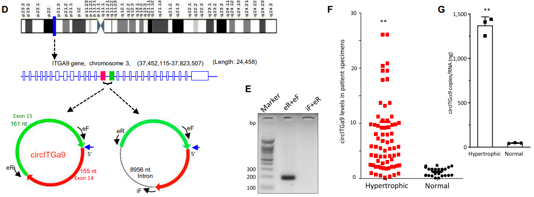1、心肌肥厚患者circITGa9水平升高