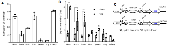 2、circITGa9对心脏功能的影响