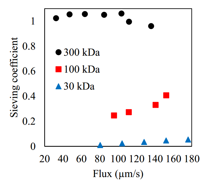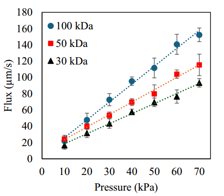 研究通过准确的流速测量,结果显示在相同压力范围内选择较低的MWCO会降低渗透率。(图3)