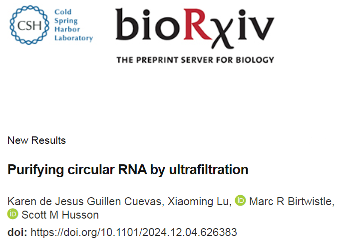 2024年12月4日,美国克莱姆森大学Scott M. Husson研究团队在预印本bioRxiv上发表研究论文:Purifying circular RNA by ultrafiltration。研究探索了超滤(UF)从IVT产物中纯化circRNA,并获得高纯度和产率的方法。