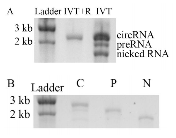 凝胶电泳用于分离具有不同迁移速率的RNA构象(preRNA、nicked RNA和circRNA)。然而,分离过程中的加热可能会损害RNA的稳定性并降低产率,且电泳方法是不可扩展的。