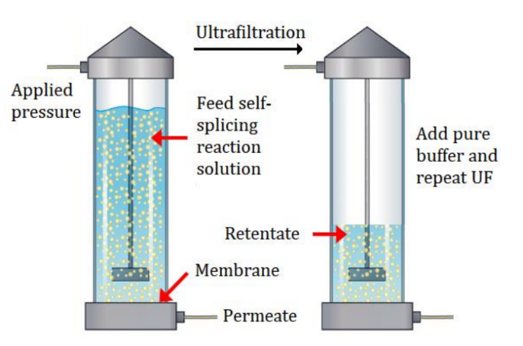 超滤(UF)方法可以利用线性DNA通过UF膜的临界通量低于超螺旋和开放的环状异构体,纯化质粒DNA,也可能适用于纯化circRNA。