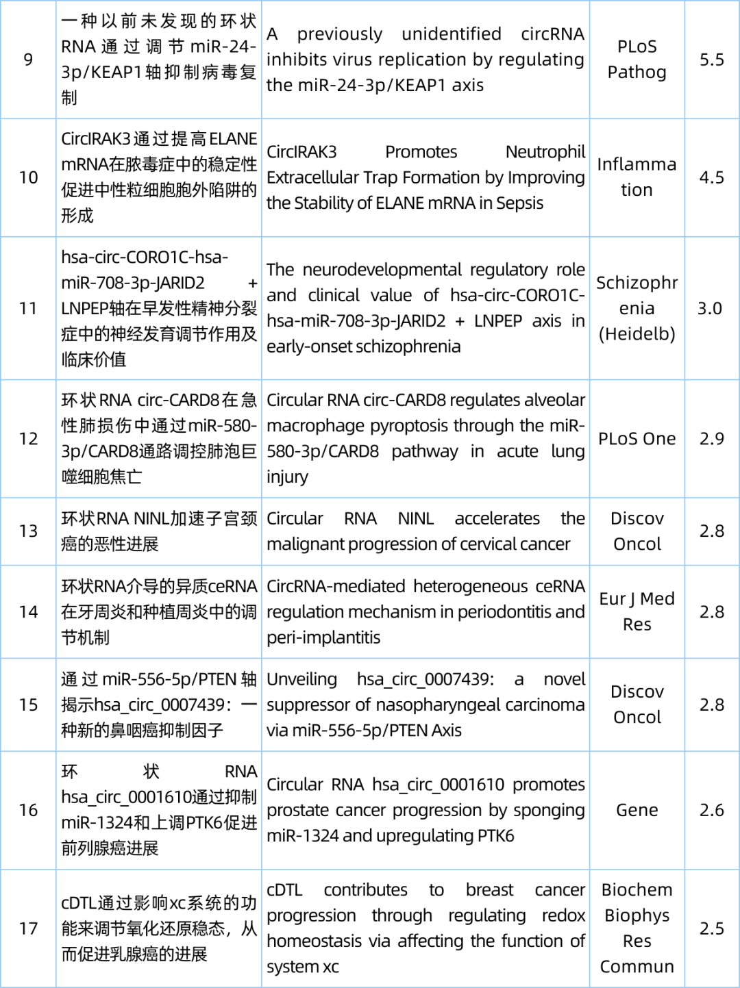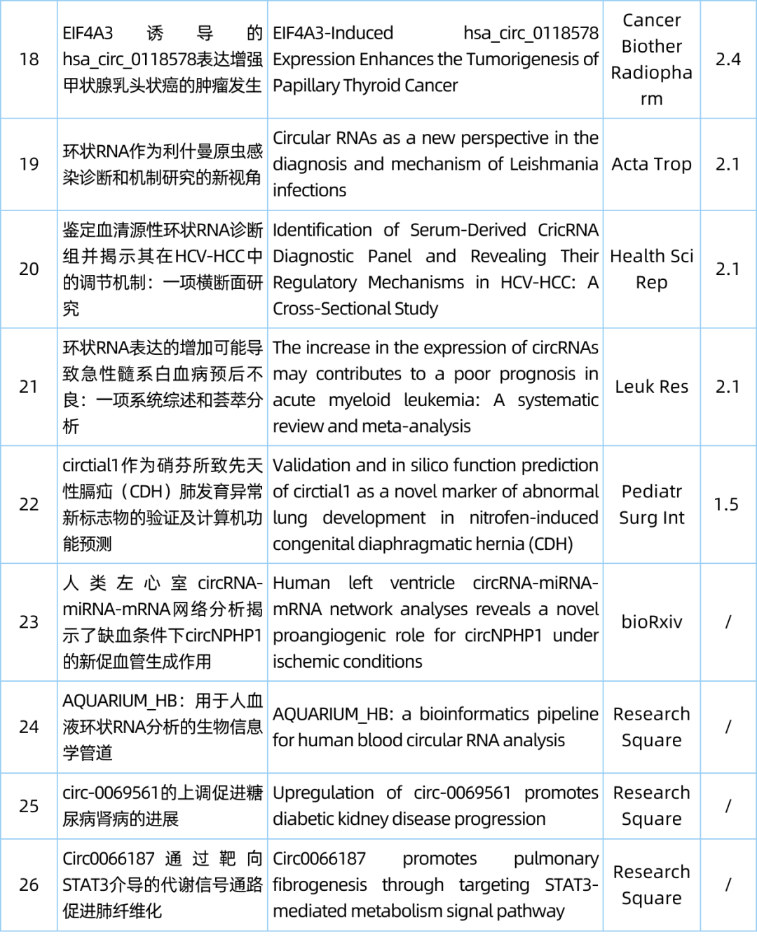 检索式:(circRNA[Title/Abstract]) OR (circular RNA[Title/Abstract]) OR (circular mRNA[Title/Abstract])
