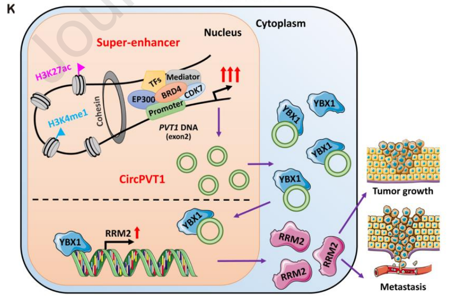 标题:Super-enhancer-associated CircPVT1 Promotes Malignancy of Hepatocellular Carcinoma via YBX1-mediated RRM2 activation