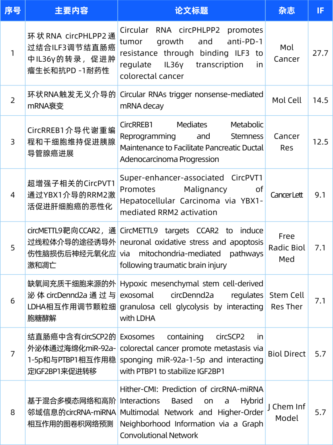 欢迎来到“circRNA研究汇总”栏目,本栏目将为您带来circRNA领域的最新研究成果。本期我们精选了26篇最新文献,涵盖了circRNA的基础研究、功能探究以及与疾病的关联。请您紧跟circRNA研究的步伐,共同洞悉科研前沿的最新动态!