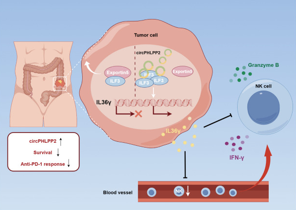01 环状RNA circPHLPP2通过结合ILF3调节结直肠癌中IL36γ的转录,促进肿瘤生长和抗PD -1耐药性