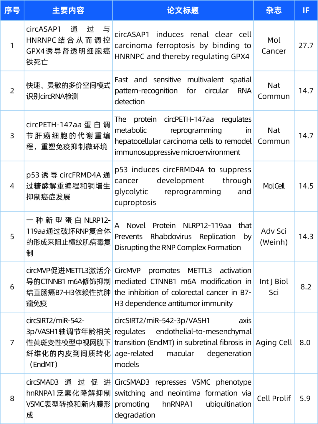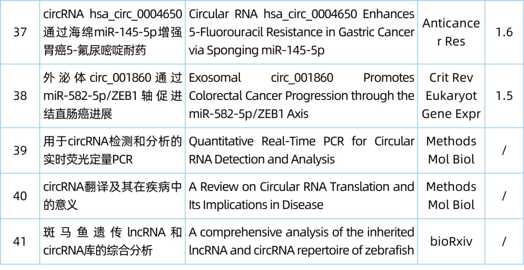 欢迎来到“circRNA研究汇总”栏目,本栏目将为您带来circRNA领域的最新研究成果。本期我们精选了41篇最新文献,涵盖了circRNA的基础研究、功能探究以及与疾病的关联。请您紧跟circRNA研究的步伐,共同洞悉科研前沿的最新动态! 检索式:(circRNA[Title/Abstract]) OR (circular RNA[Title/Abstract]) OR (circular mRNA[Title/Abstract]) 研究汇总列表 分类: circRNA与疾病, 前沿动态, 最新重要进展, 每周进展汇总admin一月 9, 2025评论