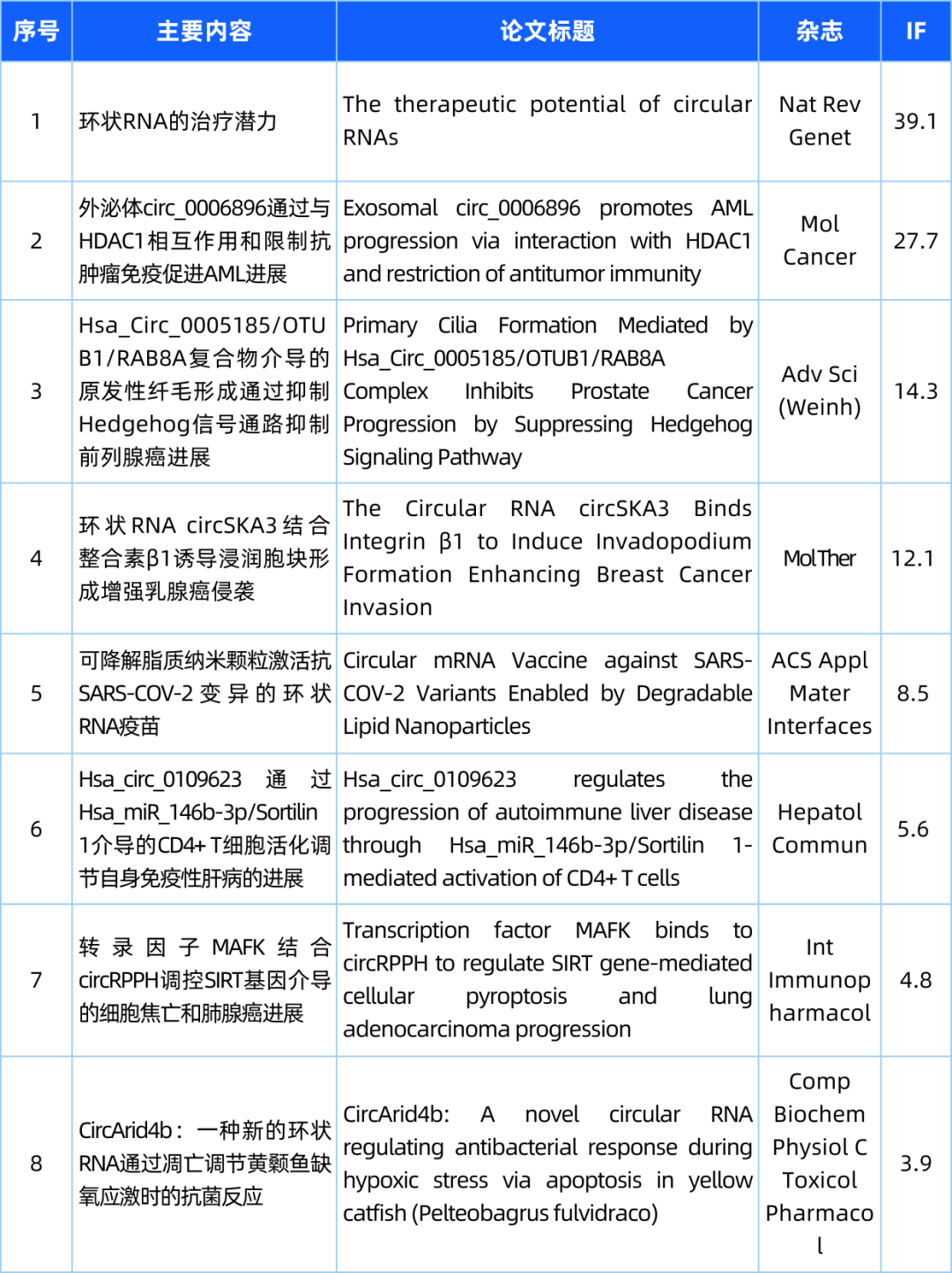欢迎来到“circRNA研究汇总”栏目,本栏目将为您带来circRNA领域的最新研究成果。本期我们精选了14篇最新文献,涵盖了circRNA的基础研究、功能探究以及与疾病的关联。请您紧跟circRNA研究的步伐,共同洞悉科研前沿的最新动态! 检索式:(circRNA[Title/Abstract]) OR (circular RNA[Title/Abstract]) OR (circular mRNA[Title/Abstract]) 研究汇总列表 分类: 最新重要进展, 每周进展汇总admin一月 13, 2025评论