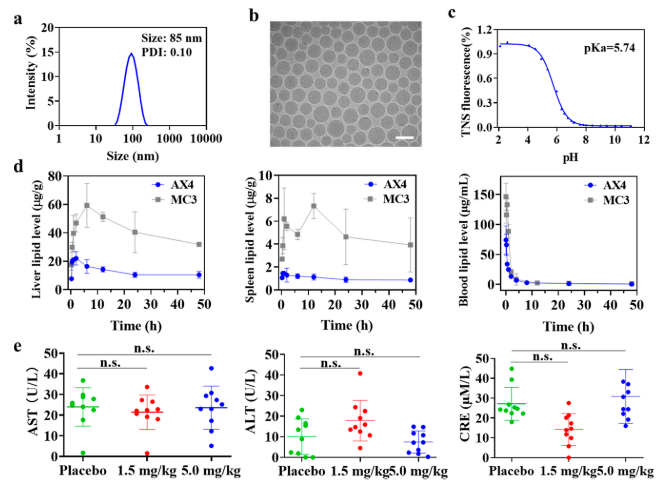图4 AX4-LNP的理化、代谢和生物相容性。