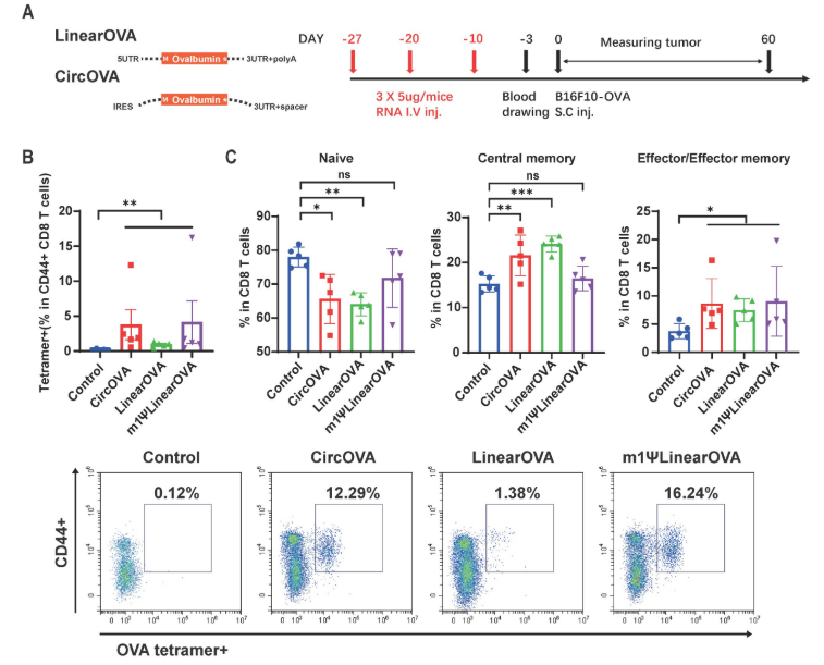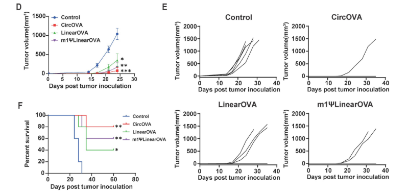 编码OVA的环状mRNA疫苗诱导有效的T细胞应答和对B16 F10-OVA肿瘤模型的保护作用