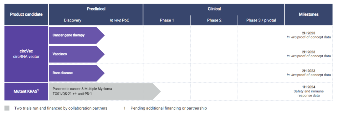 此外,Circio 正在开发一种针对 KRAS 驱动突变的泛 RAS 癌症疫苗 TG01。TG01 目前正在两项临床试验中进行测试:美国的 RAS 突变胰腺癌和肺癌以及挪威的多发性骨髓瘤。这些研究通过学术和行业合作网络进行,并得到挪威创新署和挪威研究委员会的著名研究基金的支持,为Circio创造了低成本的读数和未来可选性。
