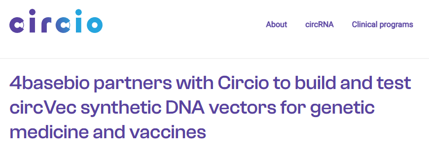 https://www.circio.com/en/4basebio-partners-with-circio-to-build-and-test-circvec-synthetic-dna-vectors-for-genetic-medicine-and-vaccines/
