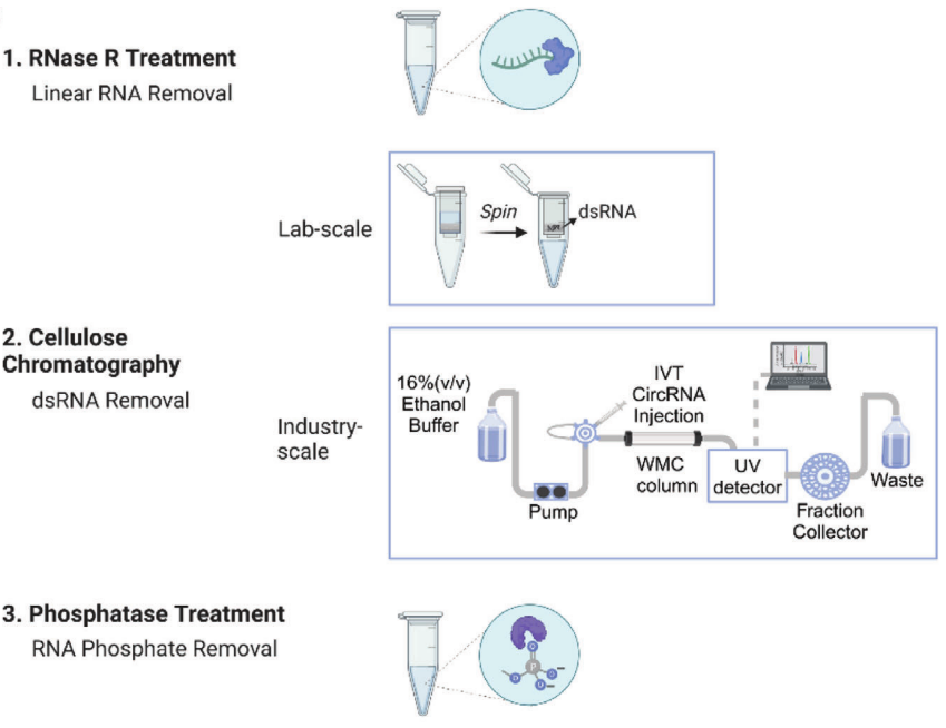 研究优化了纯化策略,纯化的circRNA展现出色的性能,突出了其作为再生医学和癌症免疫治疗的强大平台的潜力,为治疗级circRNA提供可扩展且可靠的生产平台,拓宽了circRNA的医学应用。