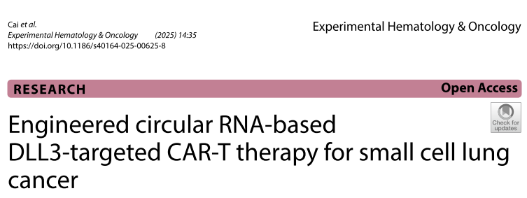 近日,北京大学人民医院邱满堂、王俊联合南京医科大学附属医院孙明等人团队在Experimental Hematology & Oncology期刊上发表研究论文:Engineered circular RNA-based DLL3-targeted CAR-T therapy for small cell lung cancer。研究确立了基于circRNA-电穿孔策略构建CAR-T疗法,其可有效靶向治疗小细胞肺癌(SCLC)小鼠模型,效果显著优于mRNA,体现了其作为小细胞肺癌新治疗策略的潜力。