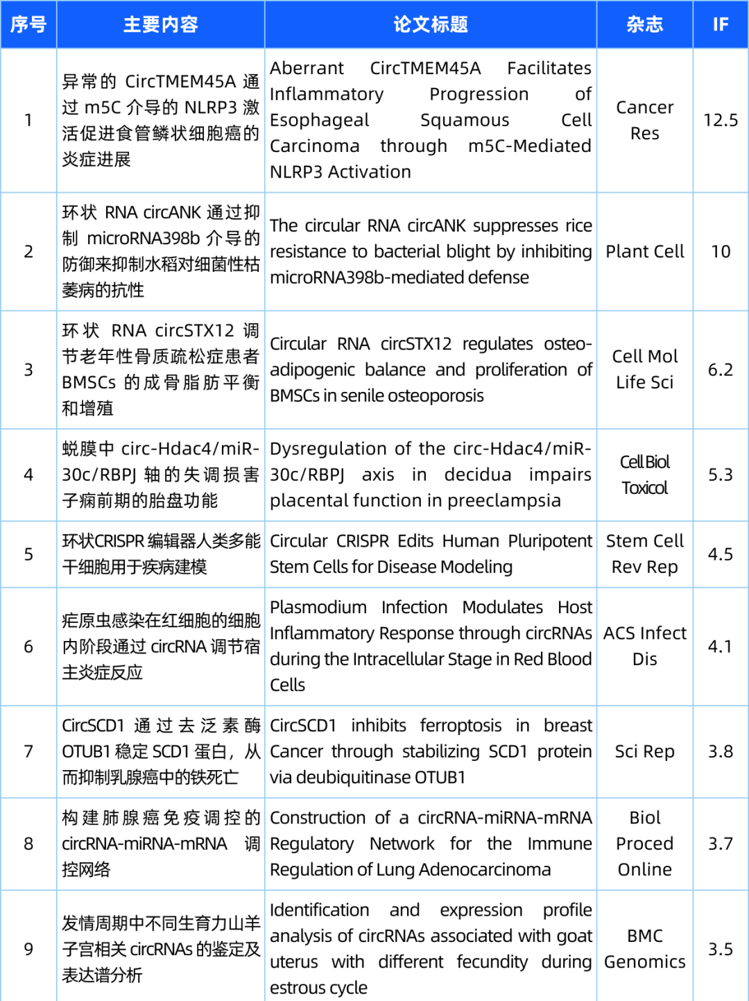 欢迎来到“circRNA研究汇总”栏目,本栏目将为您带来circRNA领域的最新研究成果。本期我们精选了15篇最新文献,涵盖了circRNA的基础研究、功能探究以及与疾病的关联。请您紧跟circRNA研究的步伐,共同洞悉科研前沿的最新动态! 检索式:(circRNA[Title/Abstract]) OR (circular RNA[Title/Abstract]) OR (circular mRNA[Title/Abstract]) 研究汇总列表 分类: circRNA与疾病, 前沿动态, 最新重要进展, 每周进展汇总, 研究热点跟踪admin四月 15, 2025评论