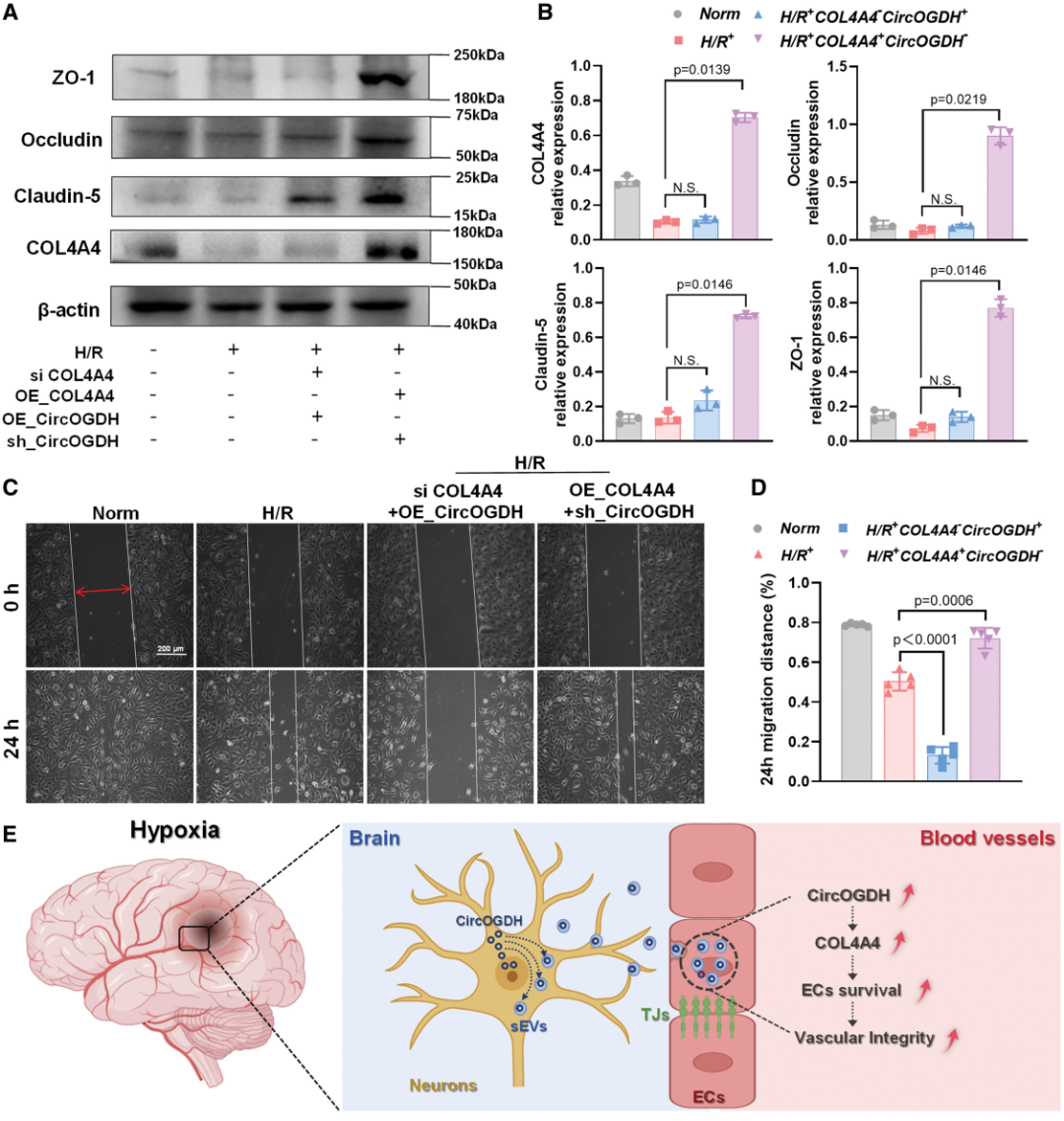 6.缺氧/复氧后CircOGDH调节其下游蛋白COL4A4在神经元和ECs中的表达