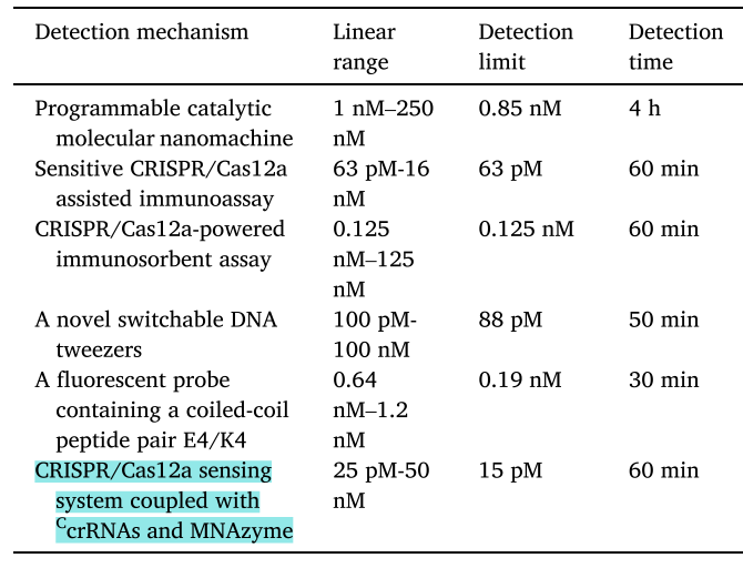 Cas12a(Cpf1)因其独特的结构和功能特性而备受瞩目,它不仅可以切割高度特异性序列的双链DNA的能力(顺式切割活性),还能非选择性地切割单链 DNA(反式切割活性)。除了基因编辑能力外,CRISPR/Cas12a系统还能作为信号放大技术,广泛用于各种生物标志物的检测,如DNA、RNA、生物小分子甚至活细胞,具有理想的检测灵敏度和检测时间。