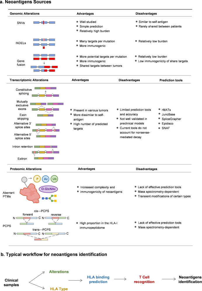 挖掘免疫原性更强、特异性更高的抗原是肿瘤疫苗开发的重要突破口。肿瘤新抗原可由基因组突变、异常RNA剪接、翻译后修饰、表观遗传重塑或病毒ORF插入等途径产生。