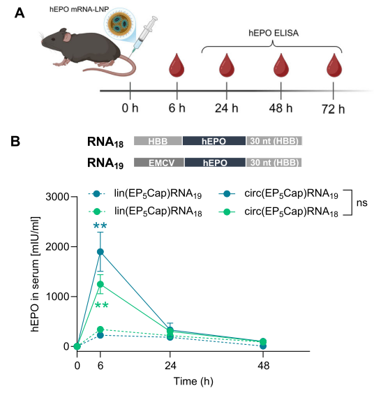 图6 编码人促红细胞生成素(hEPO)的化学环化RNA的体内翻译性。