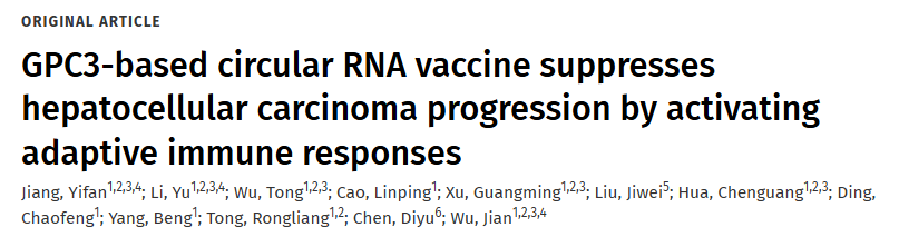 浙江大学医学院附属第一医院吴健教授团队在Hepatology上发表研究论文:GPC3-based circular RNA vaccine suppresses hepatocellular carcinoma progression by activating adaptive immune responses。