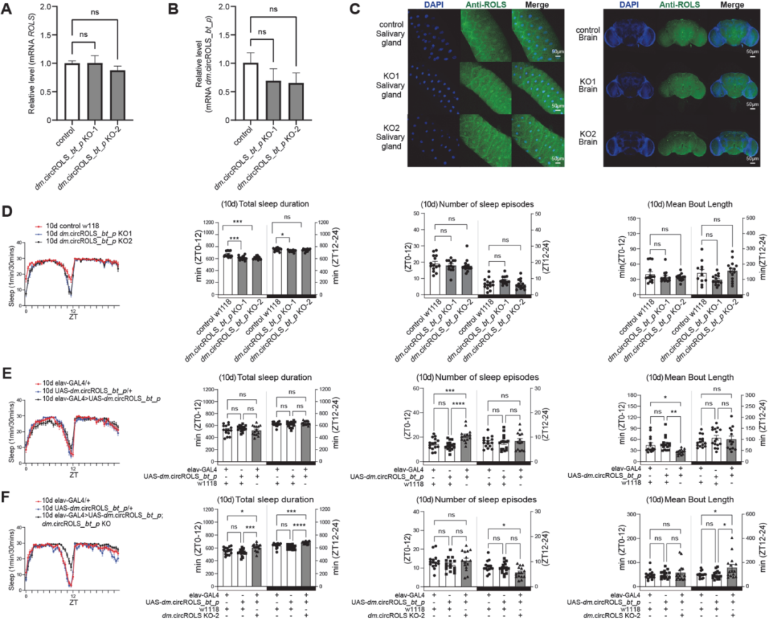 图7 过表达dm.circROLS_bt_p挽救由基因敲除引起的睡眠表型