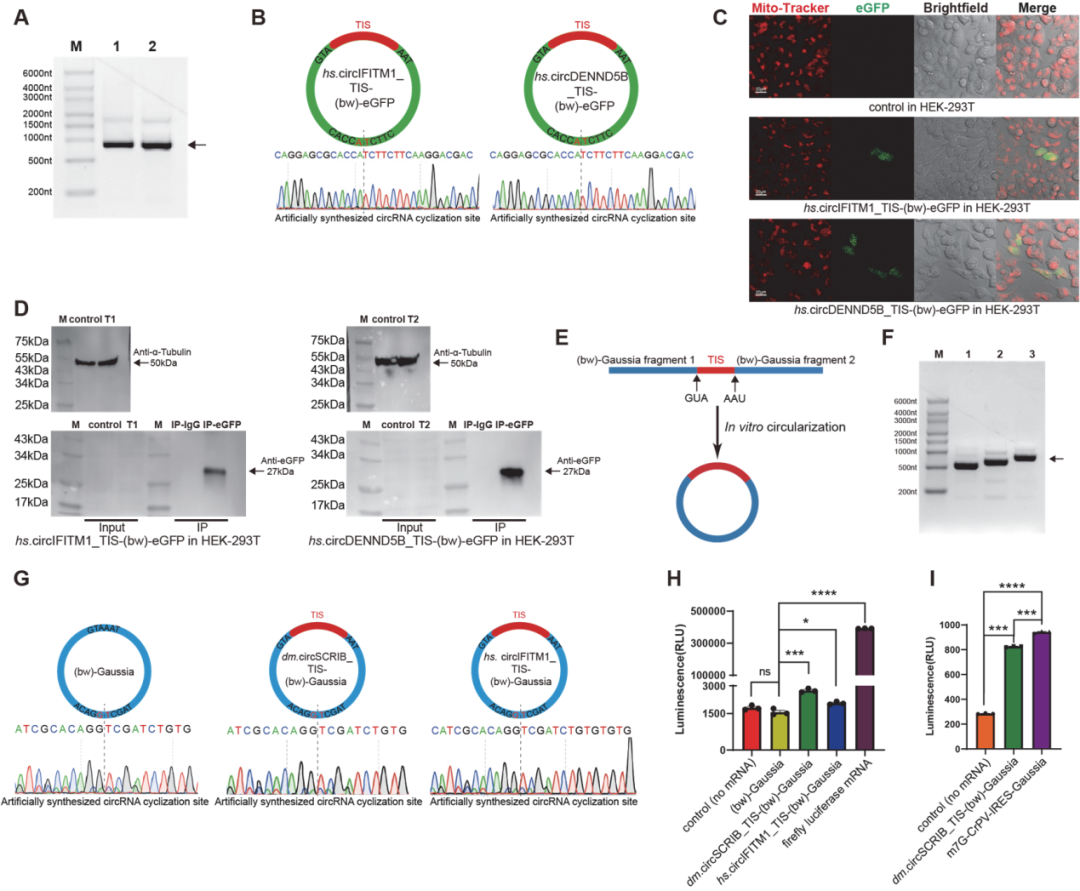 图5 环状RNA中反向开放阅读框的体外翻译