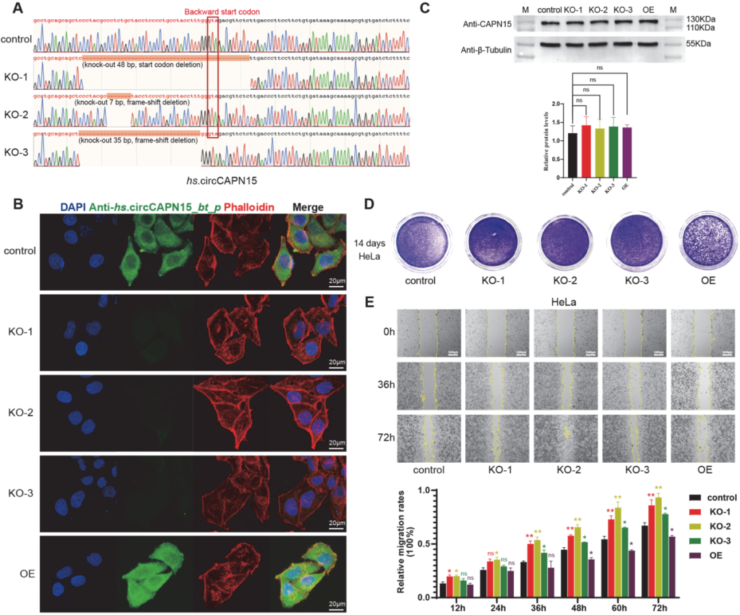 图6 hs.circCAPN15_bt_p在HeLa细胞中的生物学功能
