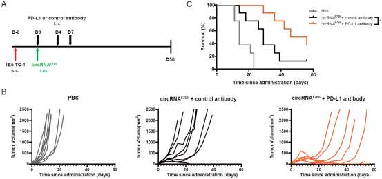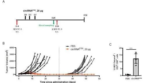 circRNAE7E6诱导已形成肿瘤的快速消退并显著延长生存期