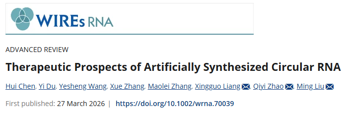 近日,中山大学附属第三医院联合中国海洋大学与广州吉赛生物团队在WIREs RNA上共同发表最新综述文章:“Therapeutic Prospects of Artificially Synthesized Circular RNA。”