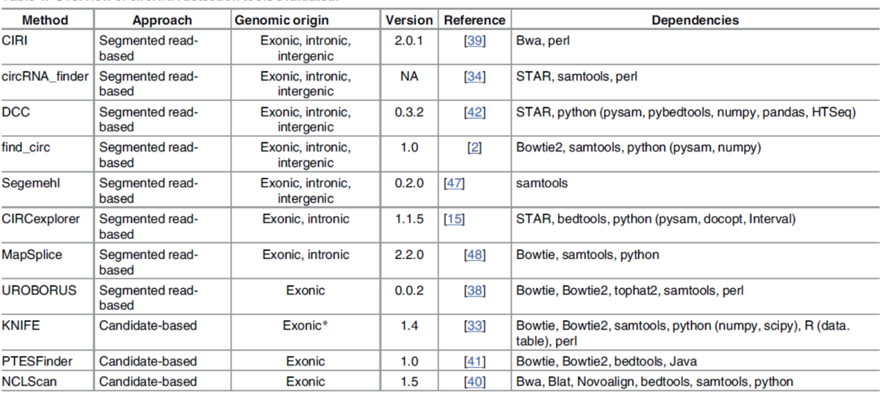 图44 各种circRNA分析工具(来自[44])