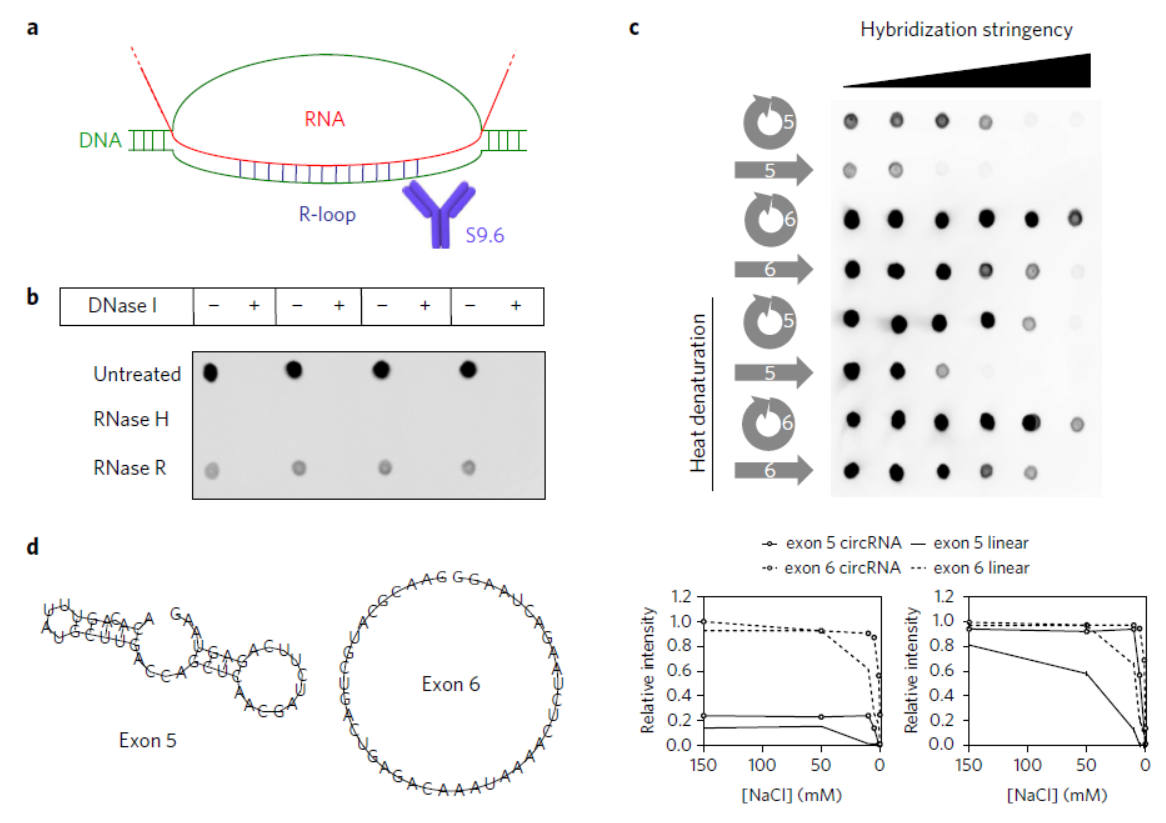 本中作者探索了拟南芥中发现SEPALLATA3(SEP3)基因第六外显子形成的circRNA对所对应的同源mRNA剪接作用的影响,该circRNA能够稳定结合所对应的DNA序列,形成RNA:DNA杂交体,导致转录暂停,募集RNA拼接因子,形成可变剪切[57]。