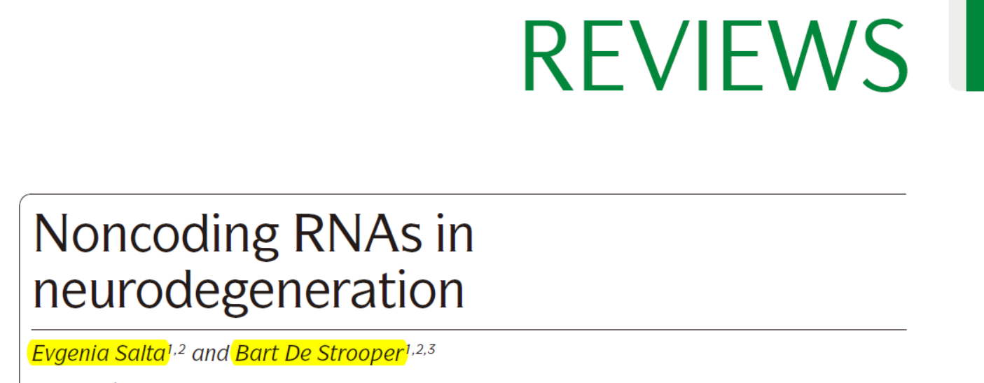 61. Evgenia Salta, B.D.S., Noncoding RNAs in neurodegeneration. Nature Review Neuroscience, 2017.